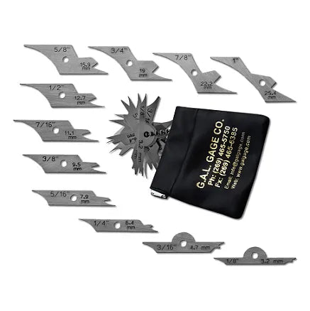 G.A.L. GageOverview G.A.L. Gage Mini Fillet Weld Keys for measuring welds. This comes complete with 11 different sizes in inch measurements with metric eq...