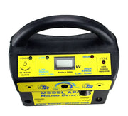 Le modèle AP/W comprend un voltmètre de lecture de crête intégré de T & R pour mesurer et afficher la tension de sortie, éliminant ainsi le besoin d'un voltmètre séparé ou d'un testeur Jeep pour vérifier la tension de sortie. Les commandes de l'instrument sont logées dans un boîtier en plastique imperméable à l'eau. Les commutateurs de commande sont à bouton-poussoir et comprennent les plages de tension Marche, Basse et Haute, l'affichage LCD du voltmètre, le commutateur de réglage de la tension, les commandes de volume (Fort et Plus fort) et le bouton de déverrouillage de la poignée de la baguette. Le commutateur de sélection de tension est scellé contre les intempéries et la poussière sous un capuchon à vis.