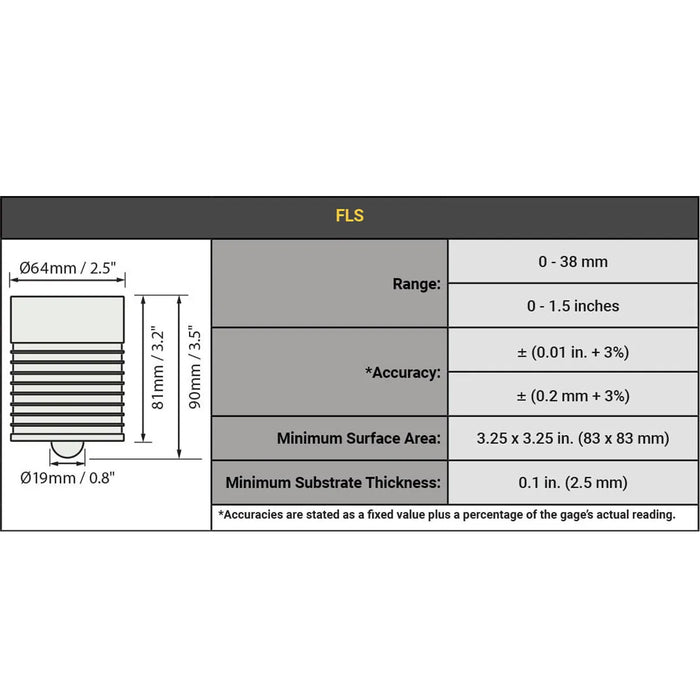 DeFelsko PosiTector FLS Probe measures thick non-magnetic coatings up to 1.5 inches (38 mm).