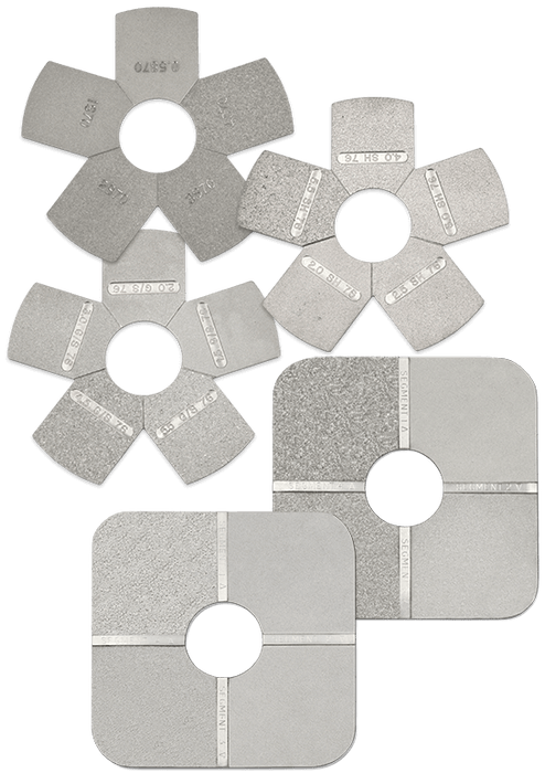 Keane-Tator Surface Roughness Comparators contain five reference points per comparator for grit/slag blast, sand blast, or shot blast. These discs are in imperial units. Conforms to ASTM D4417-A.