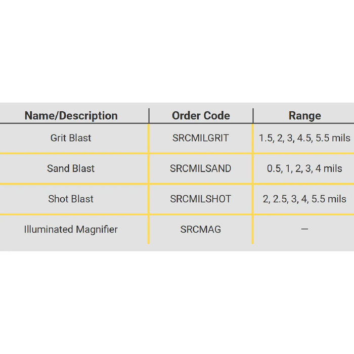 • DeFelsko ISO Surface Roughness Comparators and Keane-Tator Surface Roughness Comparators are available in shot, grit, and blast to estimate surface roughness.