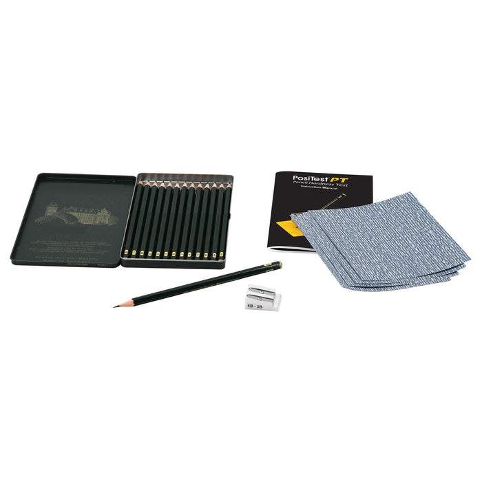 DeFelsko PosiTest PT Pencil Hardness Test determines the film hardness by pencil test (Wolff-Wilborn) in accordance with ISO 15184 and ASTM D3363.