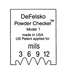 Powder thickness is between the highest-numbered tooth which made a mark and has powder clinging to it, and the next-highest tooth which left no mark and has no powder clinging to it.