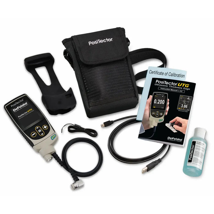 DeFelsko PosiTector UTG M Ultrasonic Thickness Gauge is a 5 MHz contact probe with wear resistant alumina probe tip and a cabled probe. This unit features the ability to toggle between Single and Multiple-Echo modes.