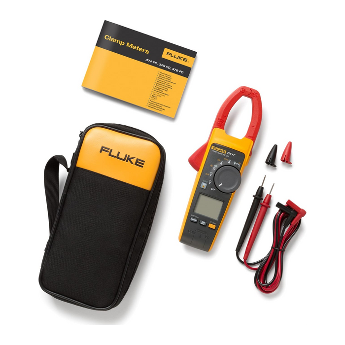 Fluke 375 FC True RMS AC/DC Clamp Meter for AC and DC current measurements, and AC and DC voltage measurements.