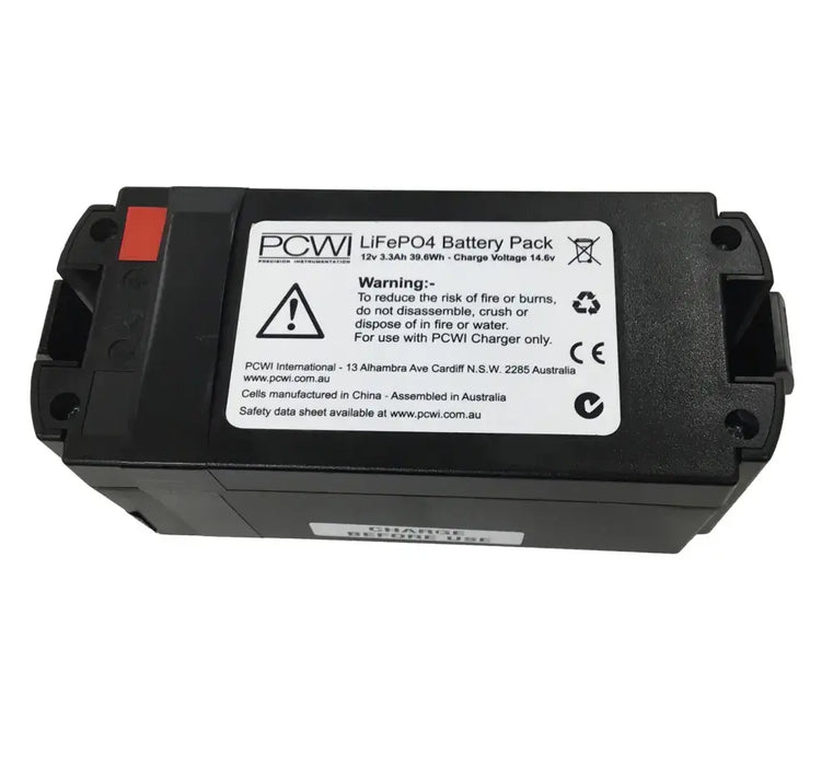 PCWI LiFePO4 Battery for use with the PCWI DC15 and DC30 High Voltage Holiday Detectors.