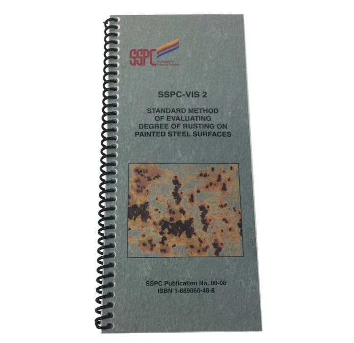 SSPC’s Visual Rust Standard features a series of 27 full-color images and 27 black-and-white diagrams representing various degrees of spot, general, and pinpoint rusting on painted steel surfaces. Text and tables provide a guide to the use of the reference photographs; a scale and description of standard rust grades; a comparison of SSPC, ASTM, ISO, and other rust grade scales; and other useful information.
