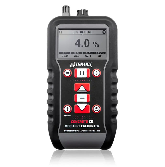 • Tramex CMEX5 Moisture Encounter is for measuring moisture and humidity in concrete floors and slabs, wood, and building materials.